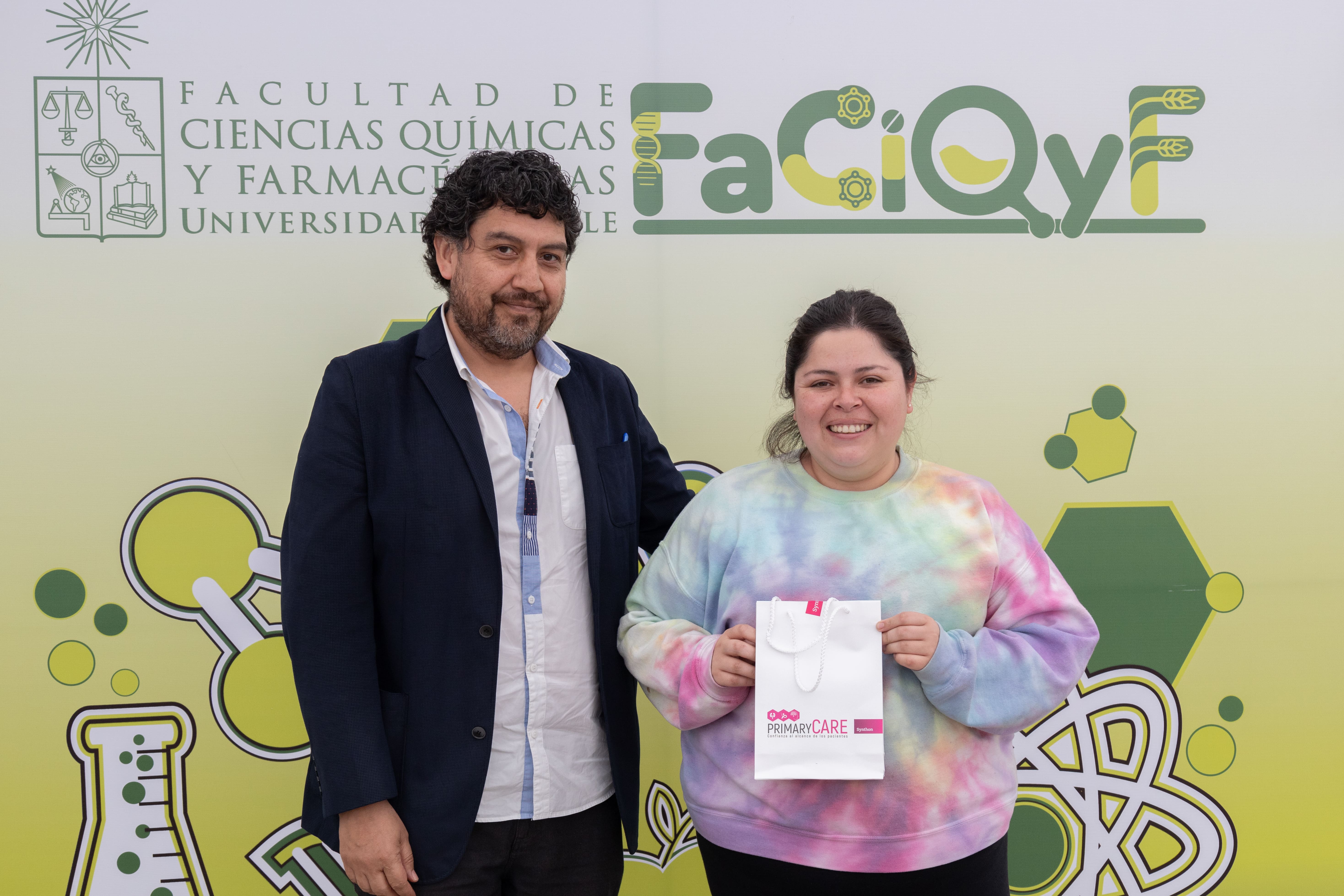 Sebastián Pozas ganó un curso de fluorescencia de rayos X, donado por la empresa SAX soluciones analíticas. Los grupos de investigación liderados por Valeria Zúñiga, estudiante de Magíster y Gabriela Maturana, estudiante de Doctorado, se les obsequió agitadores magnéticos, donados por la empresa HES Ltda. Todos/as los/as participantes tendrán un cupo gratis para algunos de los cursos online 2024, gracias al área de Educación Continua.