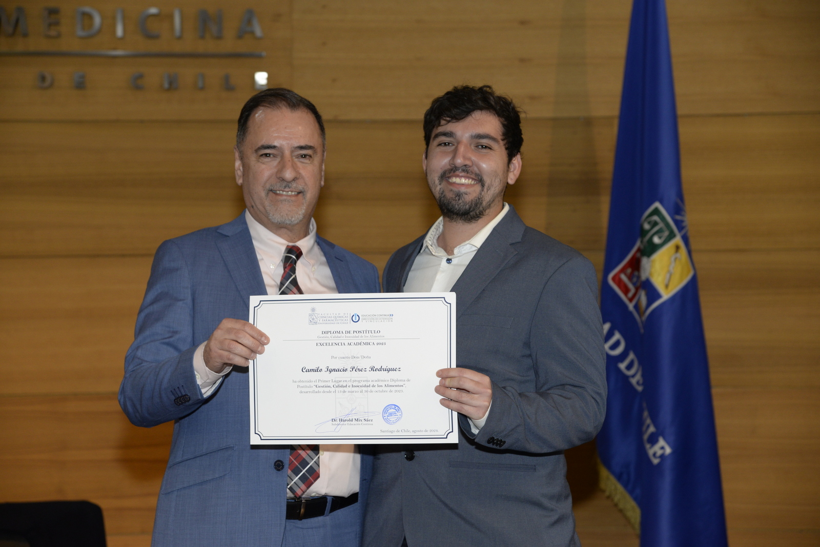 El viernes 30 de agosto, en el Aula Magna Dr. Gabriel Gasic, de la Facultad de Medicina, se celebró la graduación de los/as egresados/as de los programas de postítulo de la Facultad de Ciencias Químicas y Farmacéuticas, de la Universidad de Chile.